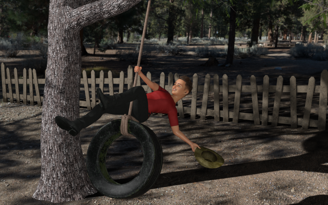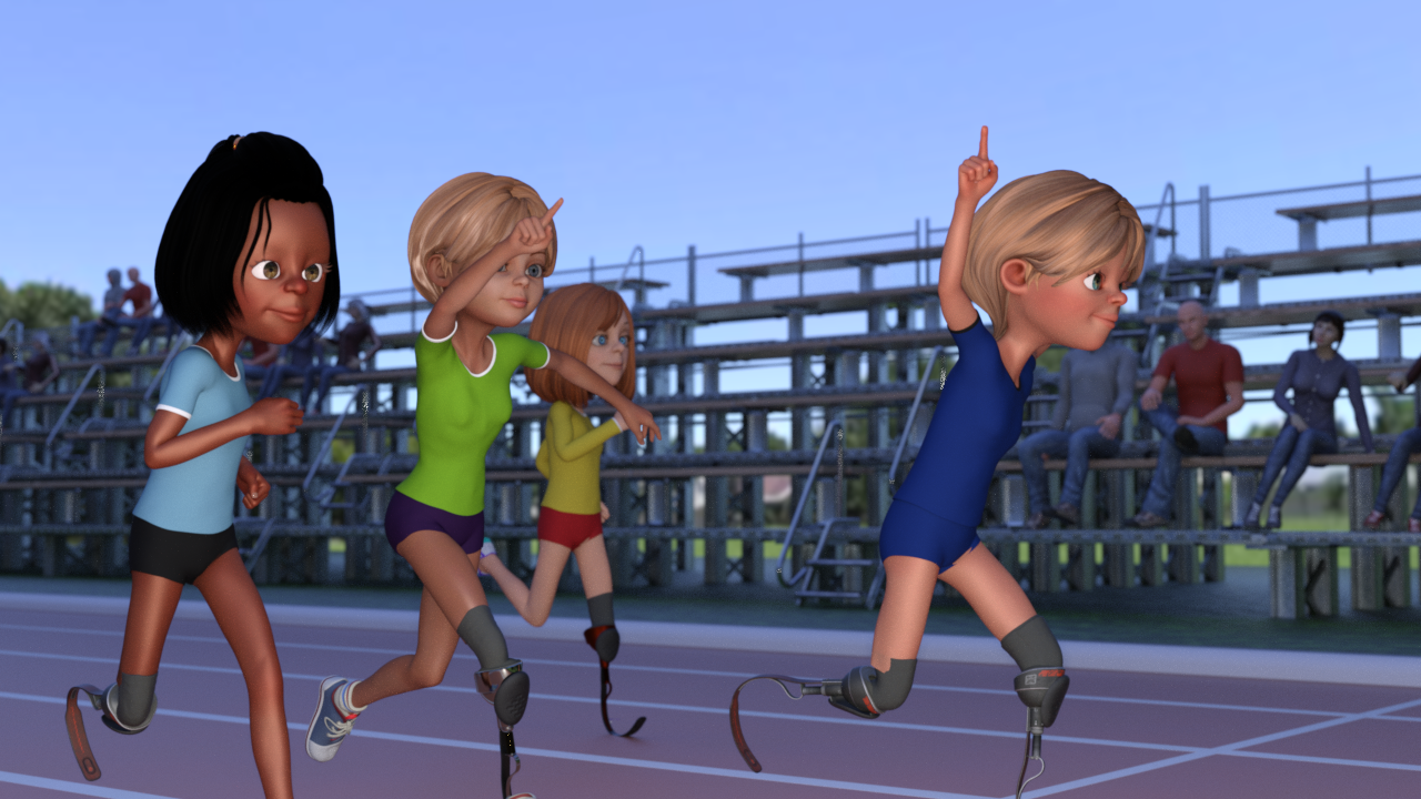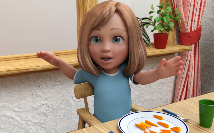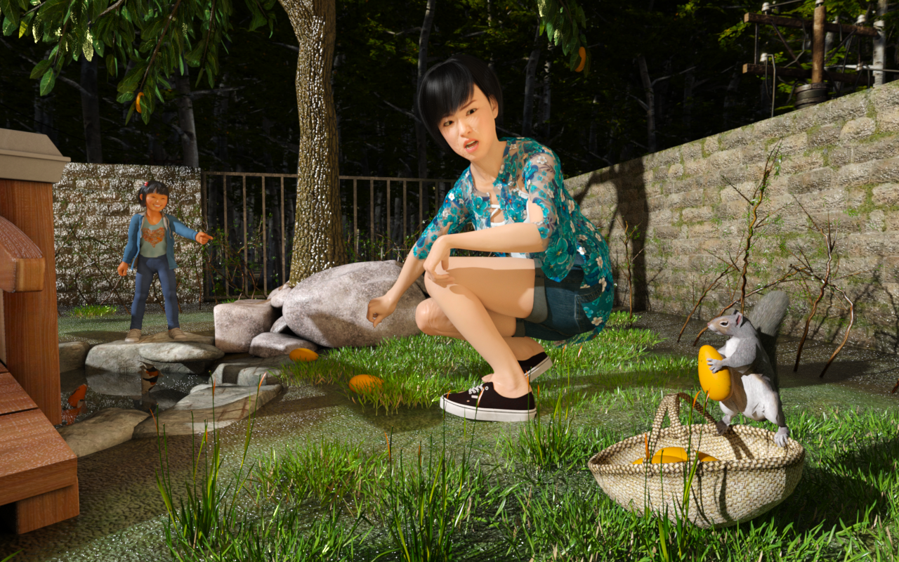 You place and pose them in a 3D scene. Then your computer converts the 3D scene into a 2D picture that is ready to use in your children’s book.